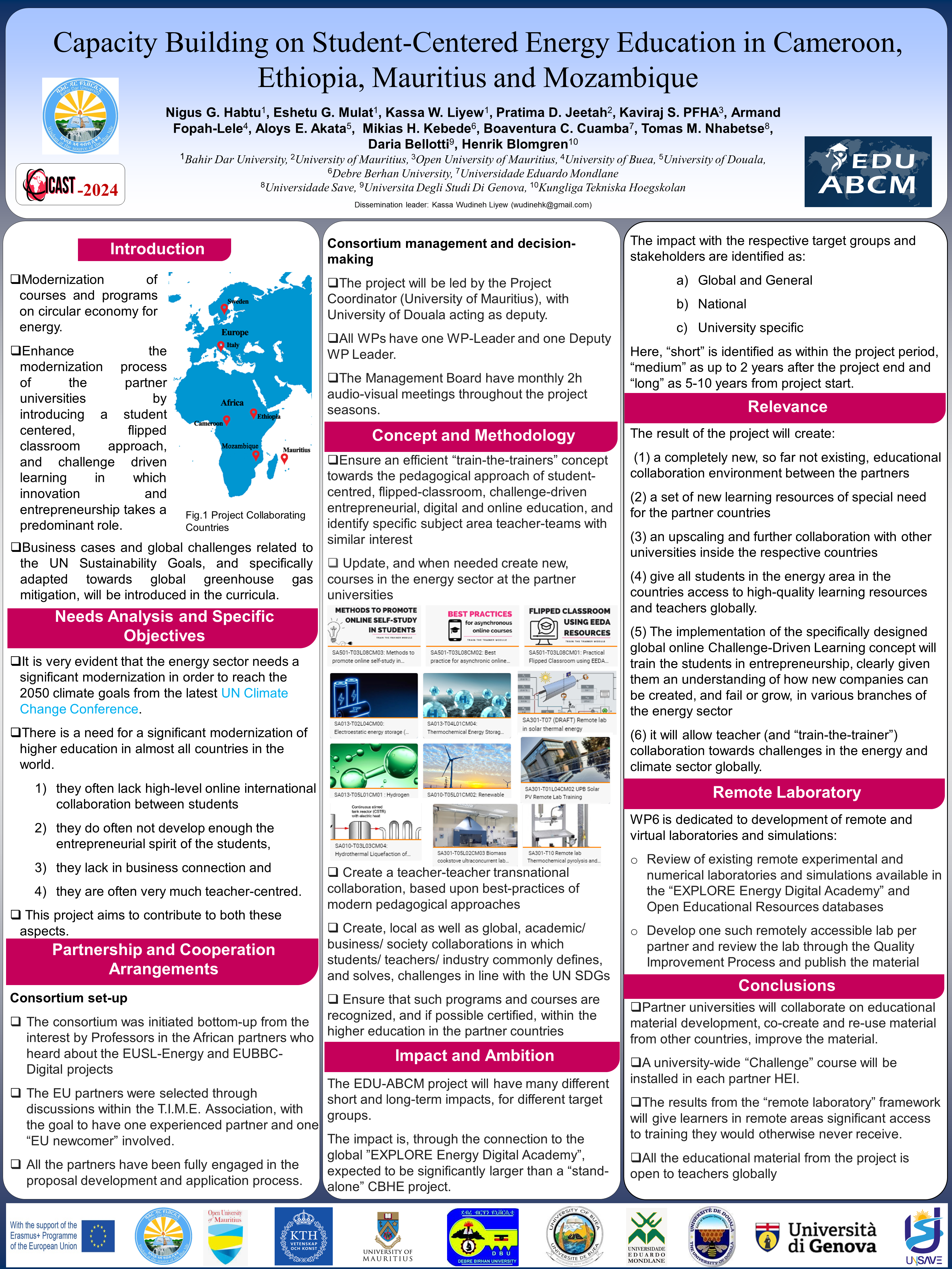 - EDU-ABCM Poster Presentation On The 12th EAI International Conference On Advancements Of Science And Technology Between Nov 1 & 3, 2024 At Bahir Dar, Ethiopia
